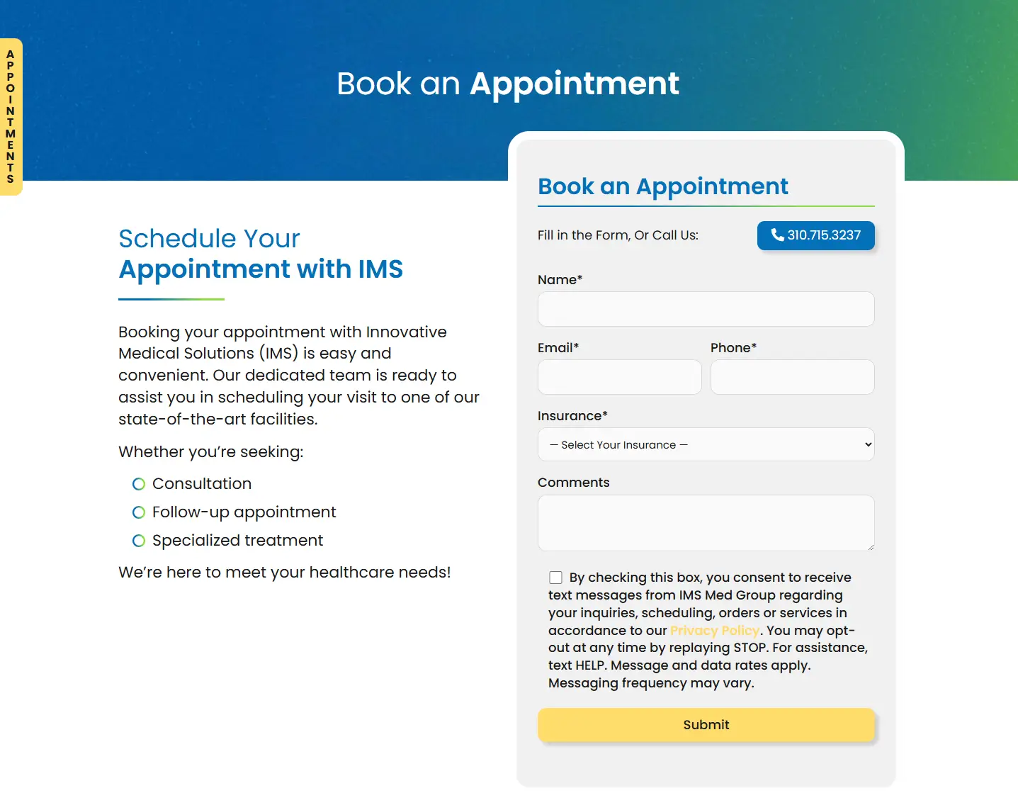 IMS ensures that patients are supported beyond the consultation room. The website includes helpful pages for billing and insurance, a provider directory with credentials and bios, and detailed location listings. All of this is made easily accessible for users of all digital skill levels.