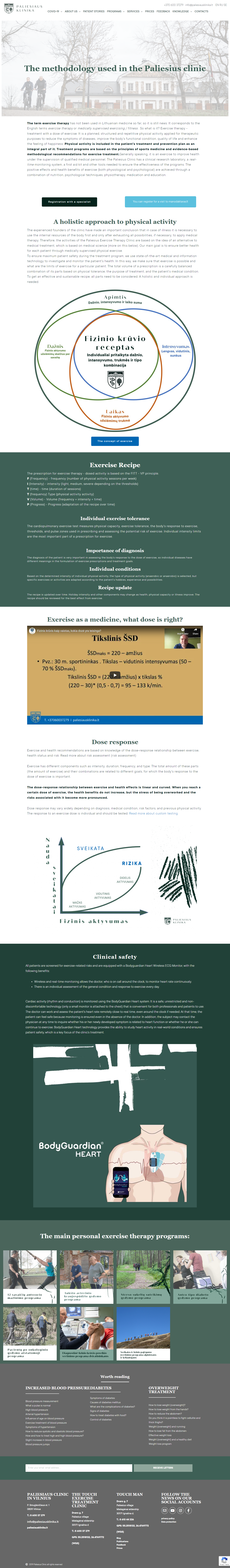 All patients are screened for exercise-related risks and are equipped with a Bodyguardian Heart Wireless ECG Monitor, with the following benefits: Wireless and real-time monitoring allows the doctor, who is on call around the clock, to monitor heart rate continuously. There is an individual assessment of the general condition and response to exercise every day.